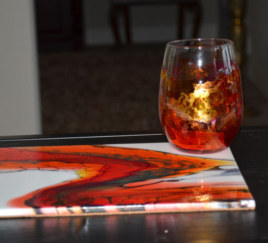 Your dining table can be more than a place to gather—it can be a canvas. My new Home Art Gallery collection brings together hand-painted porcelain placemats paired with original glassware designs. Each piece is one-of-a-kind, painted in alcohol ink and acrylic, then sealed with a food-safe, scratch-resistant resin for lasting beauty.